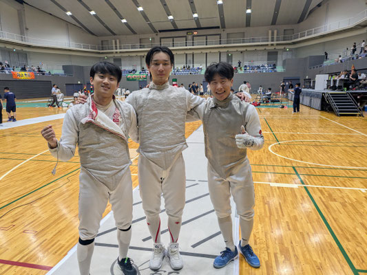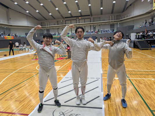 滋賀国スポ2日目の速報です。成年男子フルーレ(坪颯馬選手、菅谷優斗選手、林祥蓮選手)は、決勝で惜しくも敗けましたが、堂々の準優勝です!