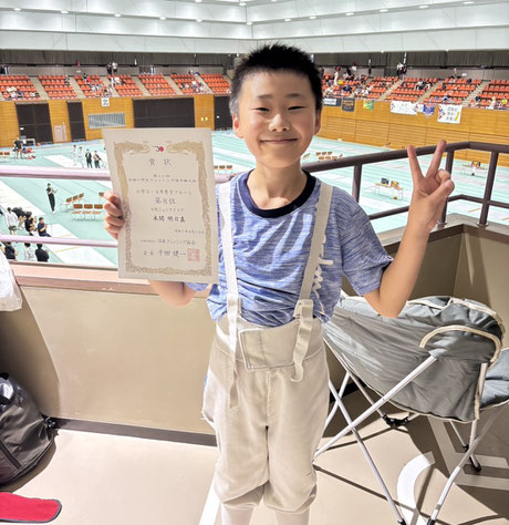 8月30日㈯~31日㈰、佐賀市SAGAプラザで、全国小学生フェンシング大会が開催されました。今別ジュニアクラブの本間明日真選手が、小学3・4年男子フルーレで、8位に入賞しました。初出場でしたが堂々の成績です。